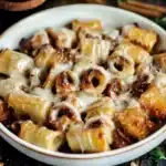 13. Frosting hinzufügen: Lasse die Zimtschnecken nach dem Backen etwas abkühlen und beträufle sie mit dem Frosting.